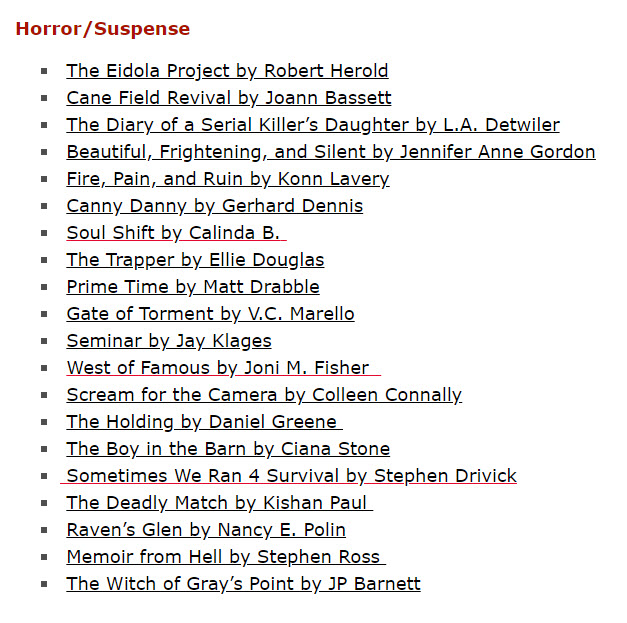 I’m happy that SEMINAR was recognized as a semi-finalist by the Kindle Book Review in its annual 2020 awards! This means it made the genre Top 20 list for Horror / Suspense and earned the KBR badge.
